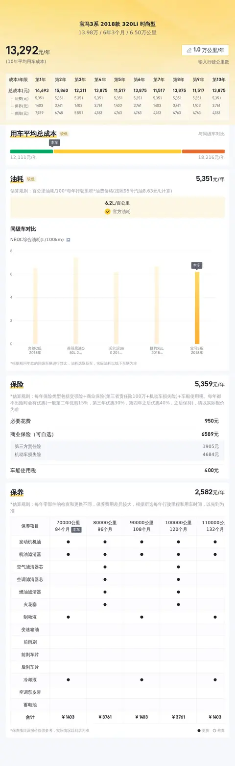 用车成本上,基于预估的百公里油耗和年度保养费,在常规每年行驶1万公里的情况下,平均每年用车综合成本约1.3万元,而这一花销与同级车相比处于适中水平。