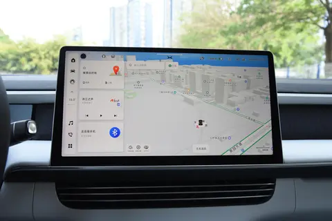悬浮式中控屏,为14.96英寸,用了Xmart OS系统,搭配高通骁龙SA8155P智能芯片,车机系统反应流畅,在功能上配置导航路况信息展示、道路救援服务、手机互联映射、支持OTA升级、面部识别、语音免唤醒功能、连续性语音识别、可见即可说等功能,为日常用车提供便捷。