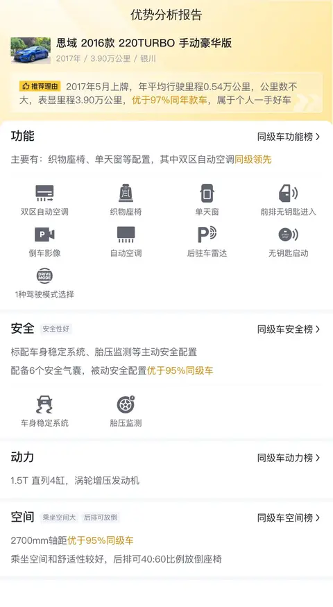 综上所述的用车成本、市场行情、优势分析、同款比价等数据仅供参考,车况信息需要线下结合车辆实际情况进行综合参考。