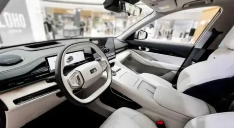 内饰方面,吉利银河E5仪表尺寸为10.2英寸,中控屏尺寸为15.4英寸,分辨率达到2560*1600。搭载Flyme Auto车机系统,配备亿咖通的龙鹰一号7nm车规级芯片,支持OTA升级、车机互联等功能。方向盘采用D字母造型,采用旋钮式换挡机构,扶手箱前方提供手机无线充电功能,支持50W的充电功率。