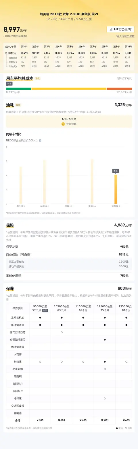 当前这款车型的二手车行情大致在11.54万至13.92万之间。根据估算,这辆车年均综合用车成本大概在每年0.9万元左右。