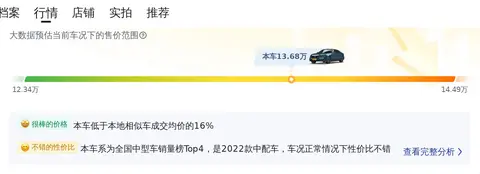目前这款车的二手车行情大致在12.34万至14.49万之间。根据估算,这辆车年均综合用车成本大概在每年1.1万元左右。