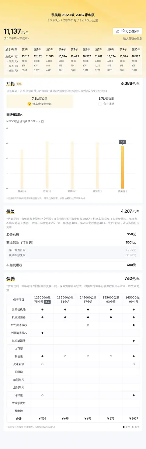 根据估算,这辆车年均综合用车成本大概在每年1.1万元左右。具体的实际费用开销可能会根据用车地点和方式等因素有所改变。