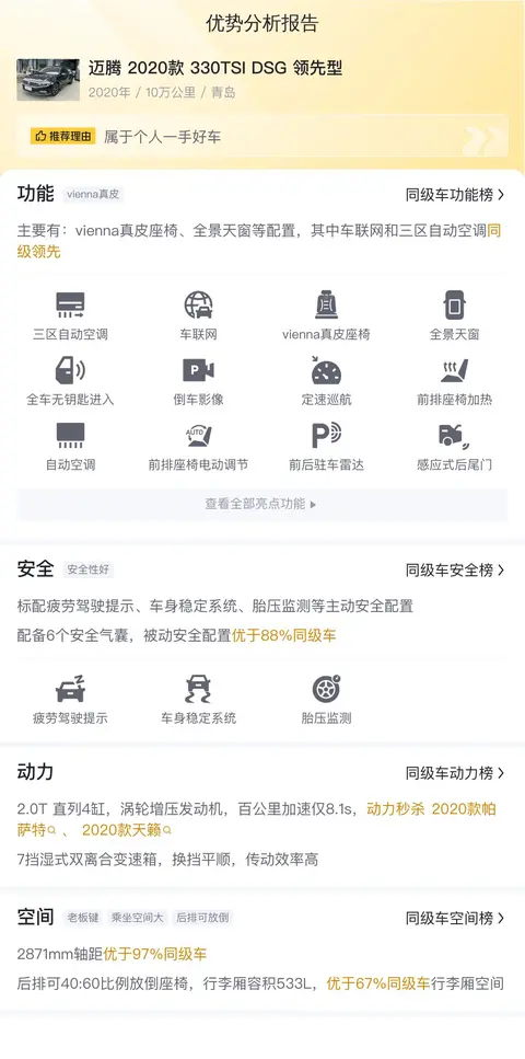 综上所述的用车成本、市场行情、优势分析、同款比价等数据仅供参考,车况信息需要线下结合车辆实际情况进行综合参考,祝您购车愉快!
