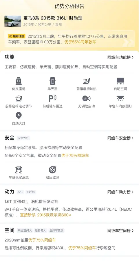 总结:这款二手宝马3系 2015款 316Li 时尚型,虽然车龄较长,但价格实惠,适合对品牌和品质有一定要求,同时预算有限的消费者。当然,购买二手车还需谨慎,建议到店试驾并结合车辆实际情况进行综合考虑。