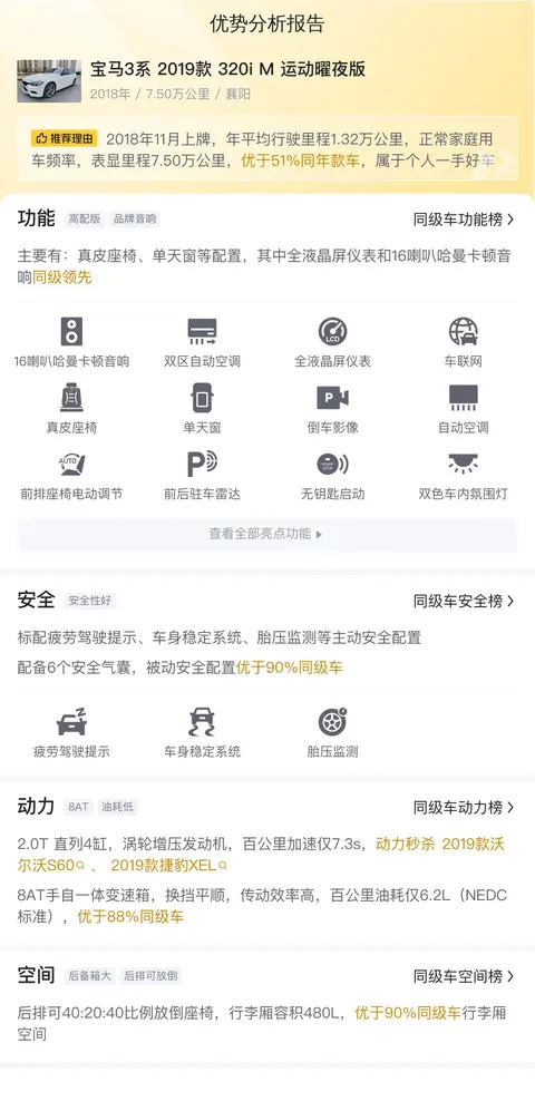总的来说,这辆宝马3系 2019款 320i M 运动曜夜版在配置、安全性能以及动力性能等方面都表现出色,是一款值得考虑的二手车选择。当然,在购买二手车时,我们还需要注意一些细节问题。首先,要仔细检查车辆的外观和内饰,确保没有明显的划痕或损坏。其次,要了解车辆的维修记录和保养情况,确保车辆没有经历过重大事故或改装。最后,要关注车辆的价格和性价比,避免被高价二手车所迷惑。