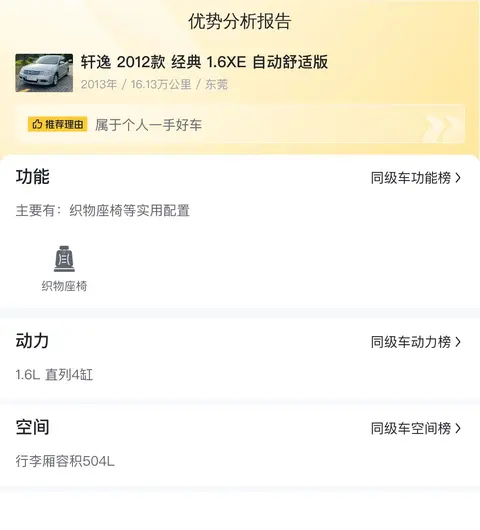 总的来说,这款轩逸 2012款 经典 1.6XE 自动舒适版是一款性价比较高的二手车选择。它在安全、动力、空间等方面均表现出色,能够满足家庭用户的日常出行需求。当然,在购买二手车时还需要注意车况检查和维护保养等方面的问题。希望本文能够为您提供一些有用的参考信息,帮助您做出更加明智的购车决策。