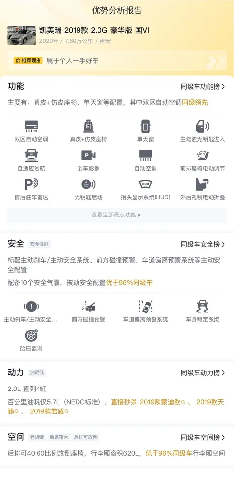 综上所述的用车成本、市场行情、优势分析、同款比价等数据仅供参考,车况信息需要线下结合车辆实际情况进行综合参考,祝您购车愉快。