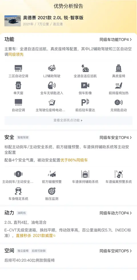 本篇介绍的是一辆奥德赛 2021款 2.0L 锐·智享版二手车,定位是中型MPV,车身外观颜色为黑色,内饰是浅色配色。累计行驶里程是7万公里,该车符合国VI排放标准。车源地和上牌地都是连云港。2021年10月首次上牌,在此期间过户1次。新车含税价为28.94万,二手车报价是16.98万。