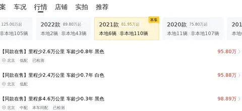 目前这款车的二手车行情大致在93.30万至113.45万之间,具体的价格因车辆状况而异。这辆二手车的报价处于较高位置,但考虑到其良好的车况,性价比还是不错的。