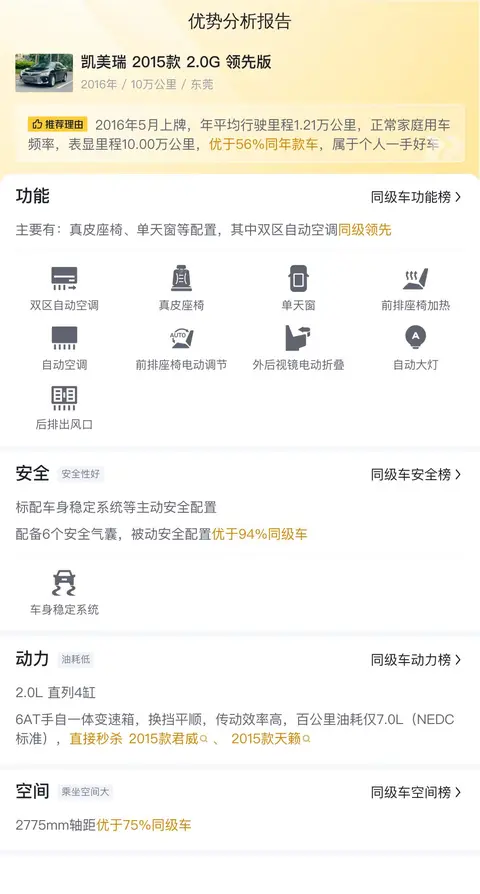 综上所述的用车成本、市场行情、优势分析、同款比价等数据仅供参考,车况信息需要线下结合车辆实际情况进行综合参考,祝您购车愉快!