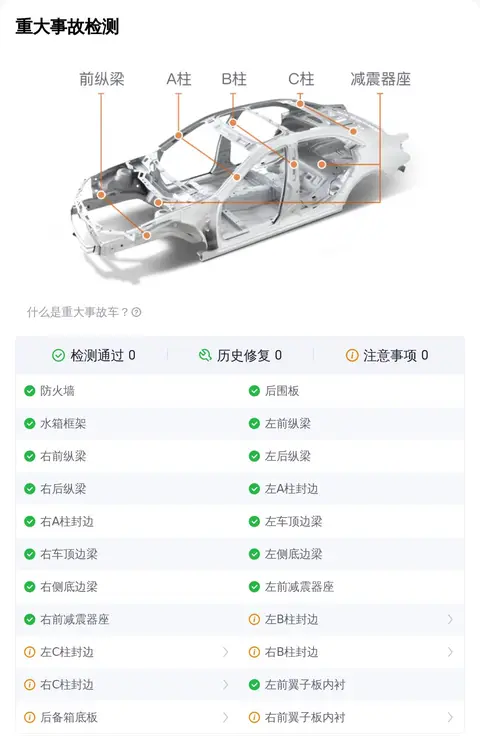 在车况部分,除了外观、内饰功能的检测,更多买家关注的是这辆车是否为“三非”车辆,三非就是指非重大事故、非火烧、非泡水。因为事故车、泡水车、火烧车都存在较大的安全隐患。不过您放心,这辆车已经通过了事故检测、火烧检测和泡水检测,可以确定它非重大事故车、非火烧车、非泡水车。