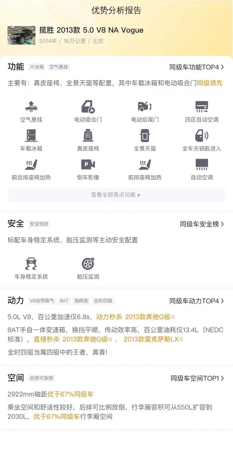 综上所述的用车成本、市场行情、优势分析、同款比价等数据仅供参考,车况信息需要线下结合车辆实际情况进行综合参考。