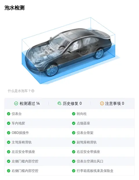 在车况部分,除了外观、内饰功能的检测,更多买家关注的是这辆车是否为“三非”车辆,三非就是指非重大事故、非火烧、非水泡。因为事故车、泡水车、火烧车都存在较大的安全隐患。不过您放心,这辆车已经通过了事故检测、火烧检测和泡水检测,可以确定它非重大事故车、非火烧车、非泡水车。