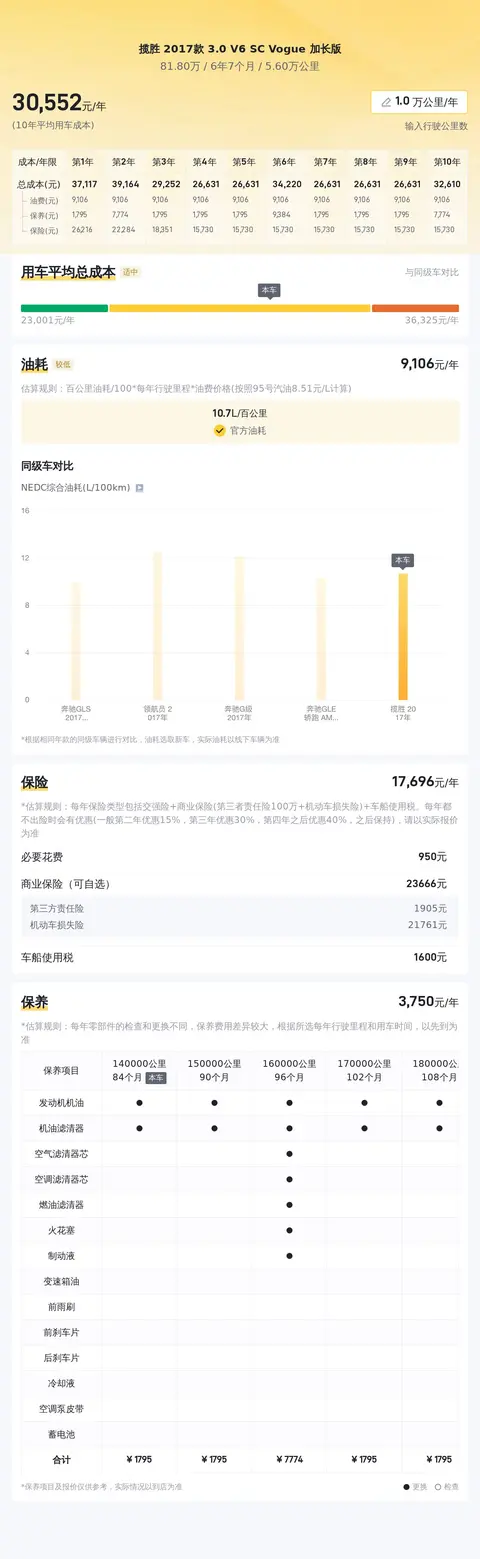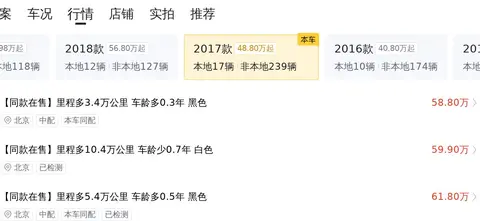 目前这款车的二手车行情大致在65.76万至79.92万之间,本车的报价处于相对合理的区间,同时它的保值率也较高。用车成本方面,包括保险、油费等开销,根据估算,这辆车年均综合用车成本大概在每年3.1万元左右。