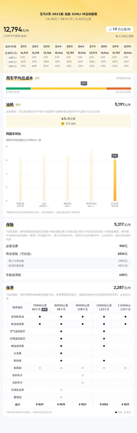 关于用车成本,根据估算,这辆车年均综合用车成本大概在每年1.3万元左右。当然,具体的实际费用开销会根据用车强度和环境等因素有所改变。
