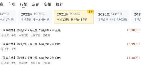 当前这款二手车的行情大致在19万至23万左右,而本车的报价则为16.98万,价格比较实惠。