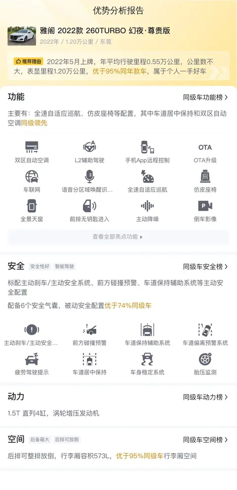 综上所述的用车成本、市场行情、优势分析、同款比价等数据仅供参考,车况信息需要线下结合车辆实际情况进行综合参考。