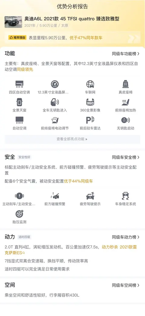 综上所述的用车成本、市场行情、优势分析、同款比价等数据仅供参考,车况信息需要线下结合车辆实际情况进行综合参考。
