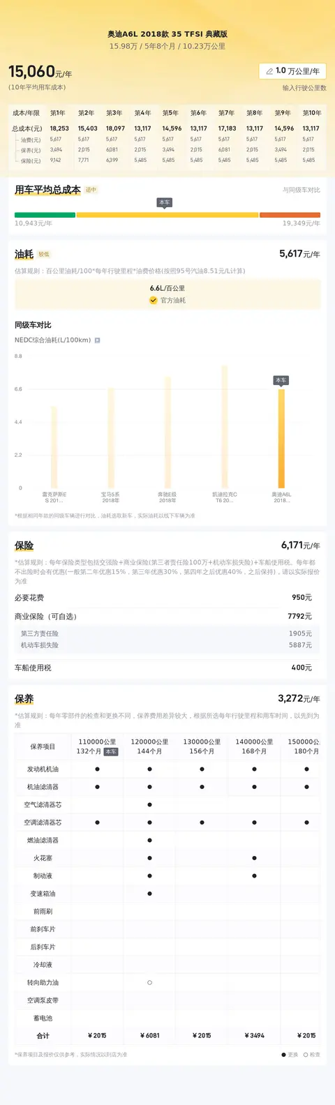 根据估算,这辆车年均综合用车成本大概在每年1.5万元左右。