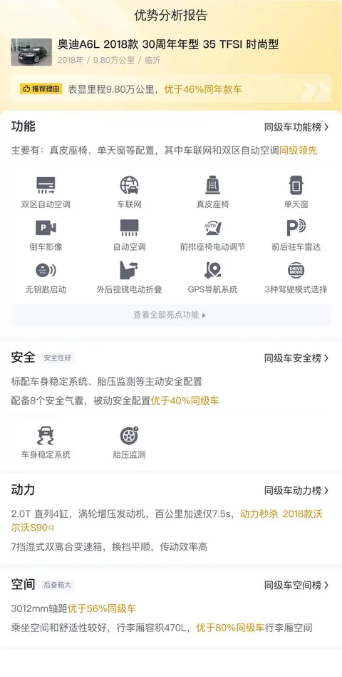 优势分析,通过懂车帝网站大数据分析,这款车在对比同级车型时,在安全、动力、舒适性方面具有明显优势。