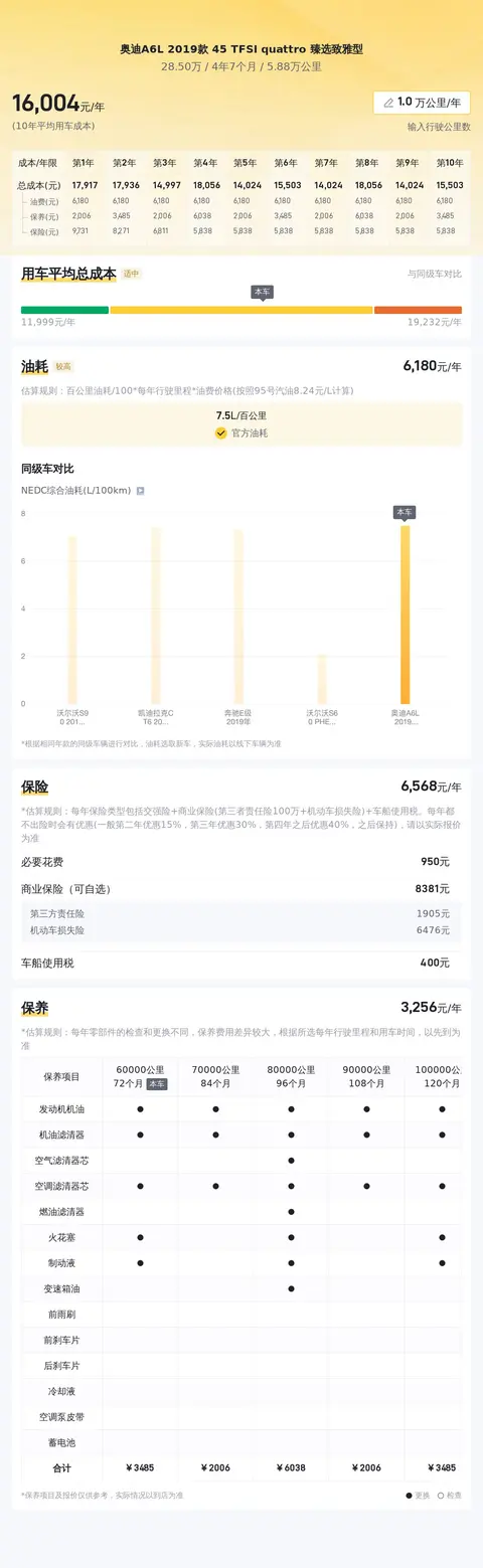 用车成本也是每个车主所关心的,根据估算,这辆车年均综合用车成本大概在每年1.6万元左右。