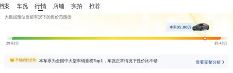 当前这款车的二手车行情大致在29.62万至35.43万之间。需要注意的是,车辆的具体成交价会受到多种因素的影响,包括车龄、已行驶的距离以及维护质量等,实际车况才是决定最终售价的关键。
