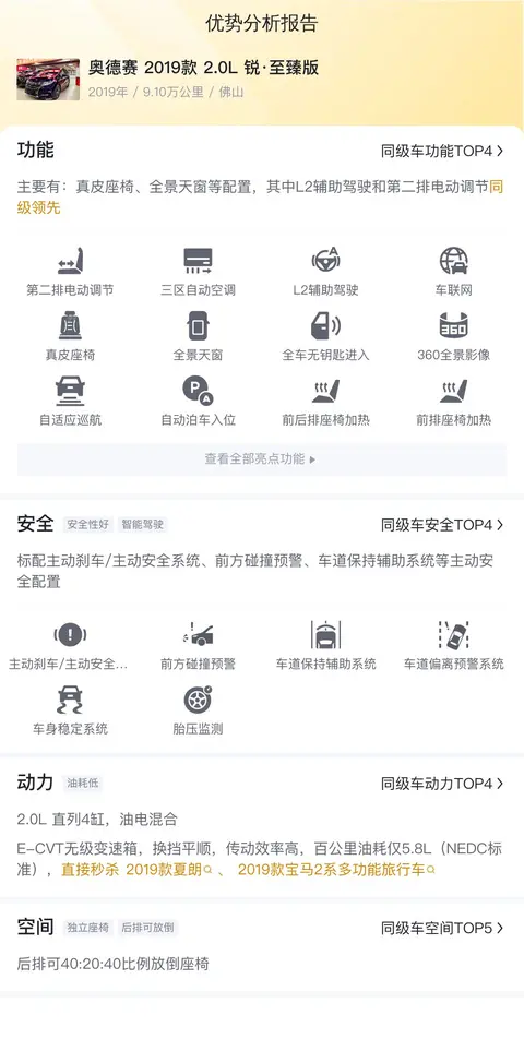 优势方面,这辆车的保值率较高,后排空间大,乘坐舒适,动力平顺,油耗低。缺点方面,噪音控制一般,车漆薄,车机反应速度慢。