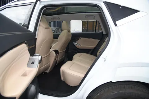 车宽1901mm,轴距为2750mm。轴距在同级车型中优势明显,几乎去到了中级车的水平。腿部空间确实很足。175cm的个子坐在前排座椅,调到舒服的驾驶坐姿的时候,坐进后排。后排的腿部空间还能有接近两拳的水平。后排的地板比较的规整。上方还有一个大尺寸的全景天窗。后排宽松而且敞亮。