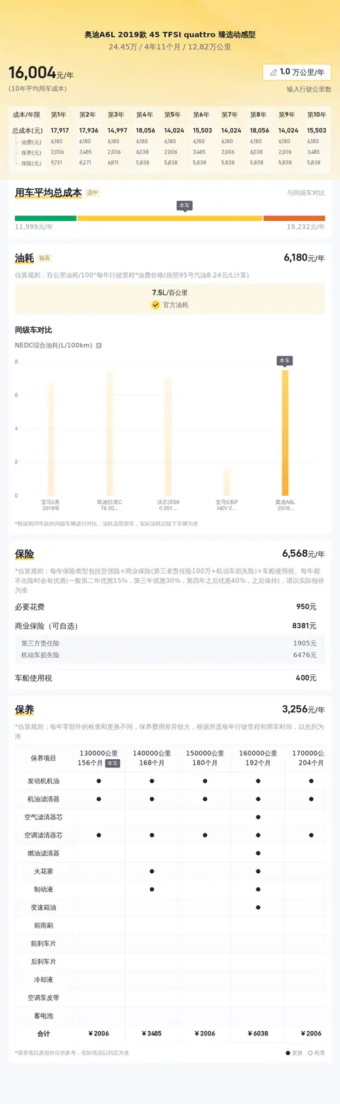 根据估算,这辆车年均综合用车成本大概在每年1.6万元左右。