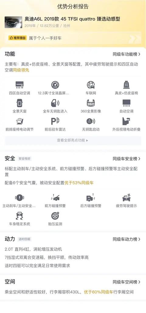 综上所述的用车成本、市场行情、优势分析、同款比价等数据仅供参考,车况信息需要线下结合车辆实际情况进行综合参考。