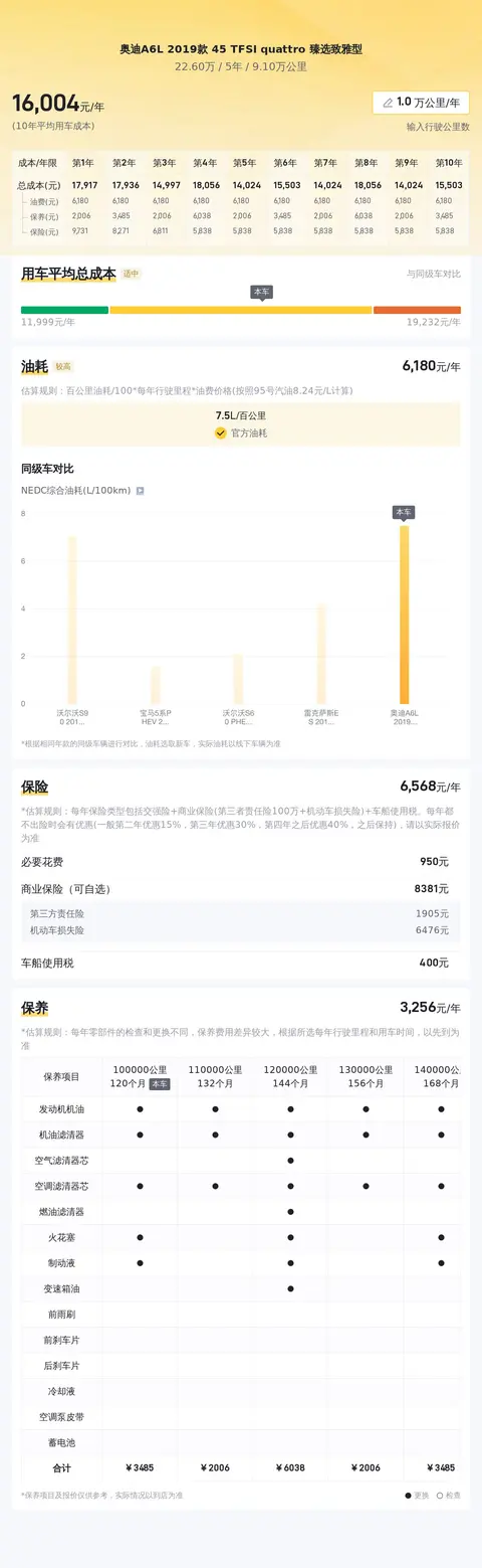 目前市场上这款车型的二手车行情大致在24万至29万左右,而本文介绍的这款报价为22.60万元,价格相对较低,具有一定的性价比。用车成本方面,按照每年行驶一万公里计算,包括保险、油费和保养费用在内,平均每年的用车成本约为1.5万元,这一数字在同级别车型中属于正常水平。