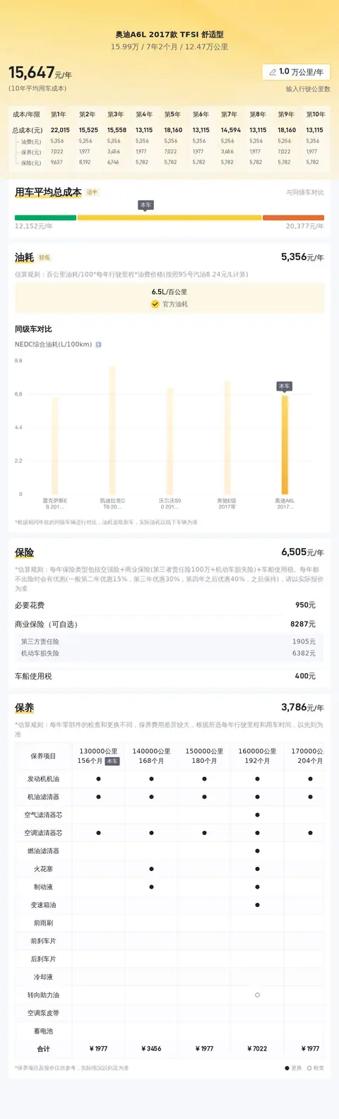 目前这款车的二手车行情大致在13.31万至16.70万之间,具体的价格要看车辆的车况而定。根据估算,这辆车年均综合用车成本大概在每年1.6万元左右。以上就是我们对这款车的全部介绍了,这些就是车辆目前的基本情况,欢迎感兴趣的车友实地试驾感受。