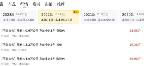 关于市场行情,目前这款车的二手车行情大致在19.09万至22.49万之间。这里要说的是,车辆的最终成交价会受多种因素的影响,像使用年限、行驶里程和车辆保养状态的名号,实际车况是影响成交价格的决定性要素。