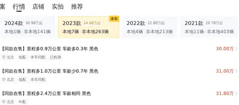 这款车目前的二手车行情大致在26.03万元至30.74万元之间。然而,值得注意的是,影响最终售价的因素众多,包括车龄、已行驶里程及维护保养情况等,而这些因素都会因车而异。
