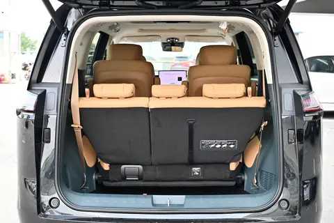 第二排的座椅为独立座椅,座椅中间有一个比较宽的过道,方便后排的乘客上下车。第二排的座椅支持腿托的功能,拥有零重力的功能,可实现躺平的状态,为中间乘客乘坐提升了乘坐体验。第三排的座椅填充物也不错,后排坐三个成年人也能轻松应付。第三排的座椅可实现完全的收纳,得到了一个宽敞的储物空间。它的后备箱的开头比较大,方便放置物品。