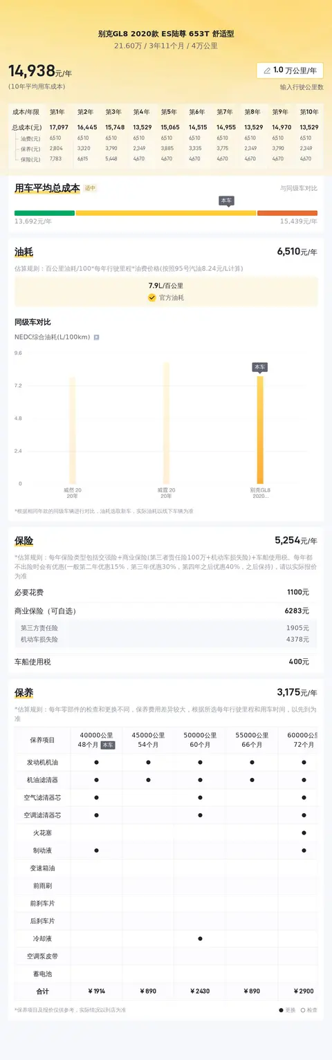 用车成本方面,根据估算,这辆车年均综合用车成本大概在每年1.5万元左右。当然,根据车主不同的用车习惯,实际费用可能会有所不同。