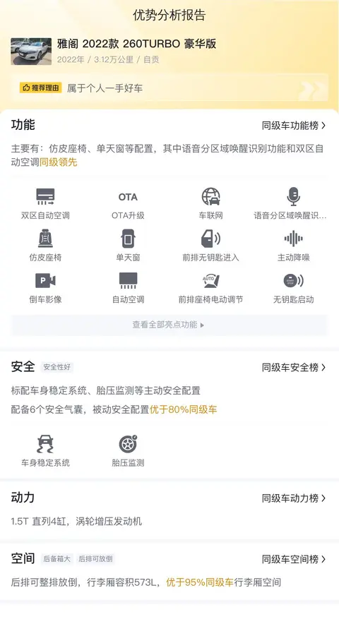 综上所述的用车成本、市场行情、优势分析、同款比价等数据仅供参考,车况信息需要线下结合车辆实际情况进行综合参考,祝您购车愉快!