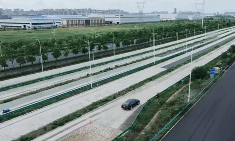 测试场中,丰富的地面振动很考验悬架耐久以及整车可靠性,这种不规则分布的碎石还会对车轮、转向系统造成很大的冲击。不过从实际体验来看,就算是面对这么高频的冲击,它的悬架还是比较从容的,传递到车内的振动不会太明显,而且虽然没有选装双层隔音玻璃,但车外的噪音也不会大幅传递到车内,豪华感做的足够了。