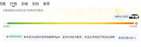报价高于市场行情价,因为凯美瑞 2019款 2.0G 豪华版 国VI的市场行情价是8.58万-10.40万,它的报价则是11.30万,价格上没有什么优势。