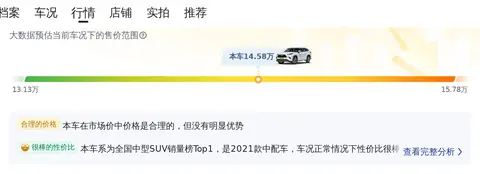 汉兰达 2021款 2.0T 两驱精英版 7座的市场行情价是13.13万-15.78万,它的报价是14.58万,报价虽然合理,但优势不明显,不过保值率较高。