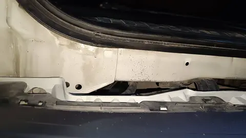 事故检测,左侧底边梁和右侧底边梁处有划伤,后围板处有锈蚀。
