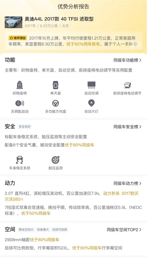综上所述的新车含税价、用车成本、市场行情、优势分析、同款比价等数据仅供参考。在配置部分,因为二手车非标品,车辆可能会存在配置改装的情况,具体车况信息需要线下结合车辆实际情况进行综合参考。