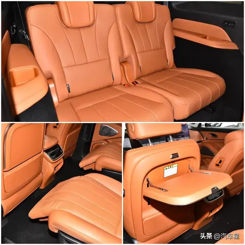 在空间部分,整车尺寸长宽高分别为:5156mm、1980mm、1805mm,轴距为3050mm,定位于中大型SUV,座椅采用真皮材质,布局为2+2+2,主副驾驶座椅和第二排座椅支持电动调节,还有女王座椅和零重力座椅,前排座椅支持加热、通风、记忆(主驾驶)和按摩功能,主副驾驶座椅整体也支持前后移动、高低调节和靠背角度调节功能,后排座椅拥有50:50比例放倒。