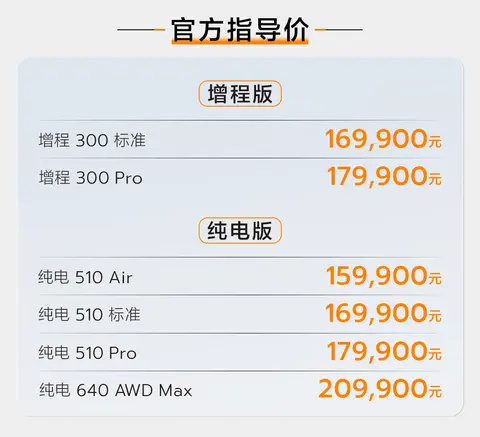 | 纯电版 | 纯电版 510 Air | 15.99 |