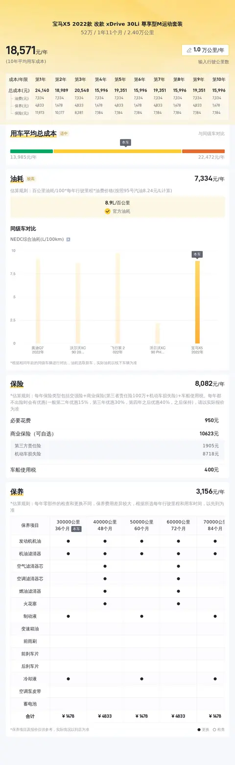 当前市场上,这款宝马X5的二手车行情在43万至51万左右。当然,具体的售价会受到车辆状况等因素的影响。关于用车成本方面,我们对这款车在全国的保有量及其近半年的销量进行了统计和分析,并将通过图片的形式向您展示该车在市场上的表现如何。此外,我们还将向您展示这款车在使用过程中的平均成本,以及它与同级别车型在成本方面的对比情况。通过这些数据,您可以更清楚地了解这款车在市场上的表现和使用成本,从而为您的购车决策提供有价值的参考。