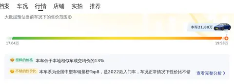 综上所述的新车含税价、用车成本、市场行情、优势分析、同款比价等数据仅供参考。在配置部分,因为二手车非标品,车辆可能会存在配置改装的情况,具体车况信息需要线下结合车辆实际情况进行综合参考。