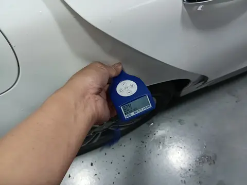 在外观的检测中,这辆车在右后翼子板处有钣金修复的情况,不过是极其轻微的痕迹,不影响整车的外观。