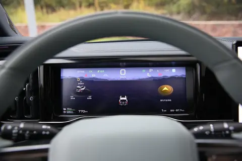 其中在中控台上方,新车配备了12.3英寸全液晶仪表屏、15.6英寸2.5K中控多媒体屏和12.3英寸副驾多媒体娱乐屏(低配车型没有),并内置有Filink智能交互车机系统,车机功能上还是相对丰富的,而且使用体验上也比较流畅。