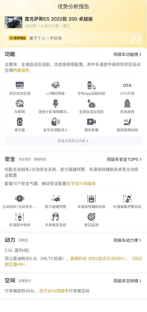 综上所述的新车含税价、用车成本、市场行情、优势分析、同款比价等数据仅供参考。在配置部分,因为二手车非标品,车辆可能会存在配置改装的情况,具体车况信息需要线下结合车辆实际情况进行综合参考。